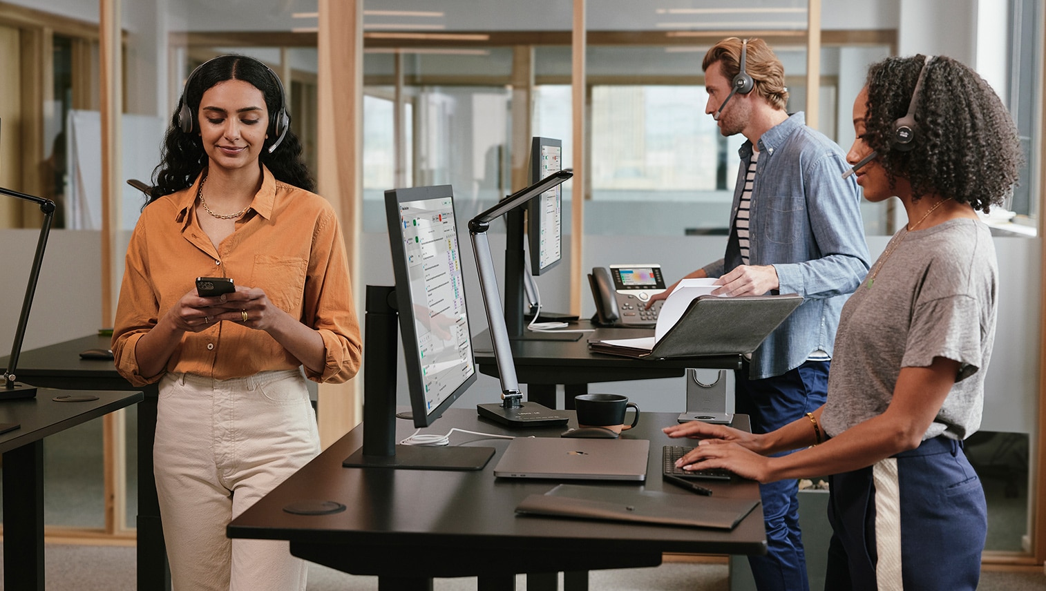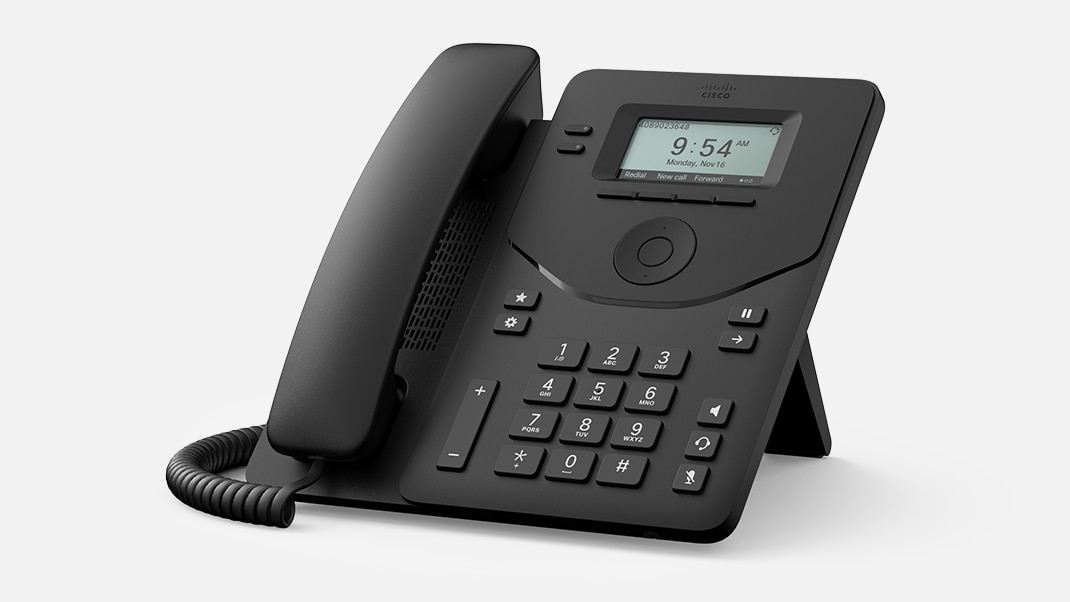 9800 シリーズの新製品 Desk Phone 9811 は、信頼性の高い基本通話機能と、重要なニーズにすばやくアクセスできるアクションボタンを備えています。