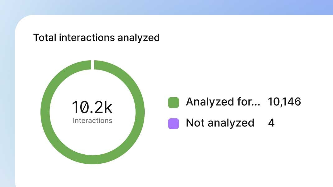 アンケートデータ、業務メトリクス、通話録音を活用して自動生成された CSAT スコアにより、すべての音声対応について顧客満足度のインサイトを得ることができます。