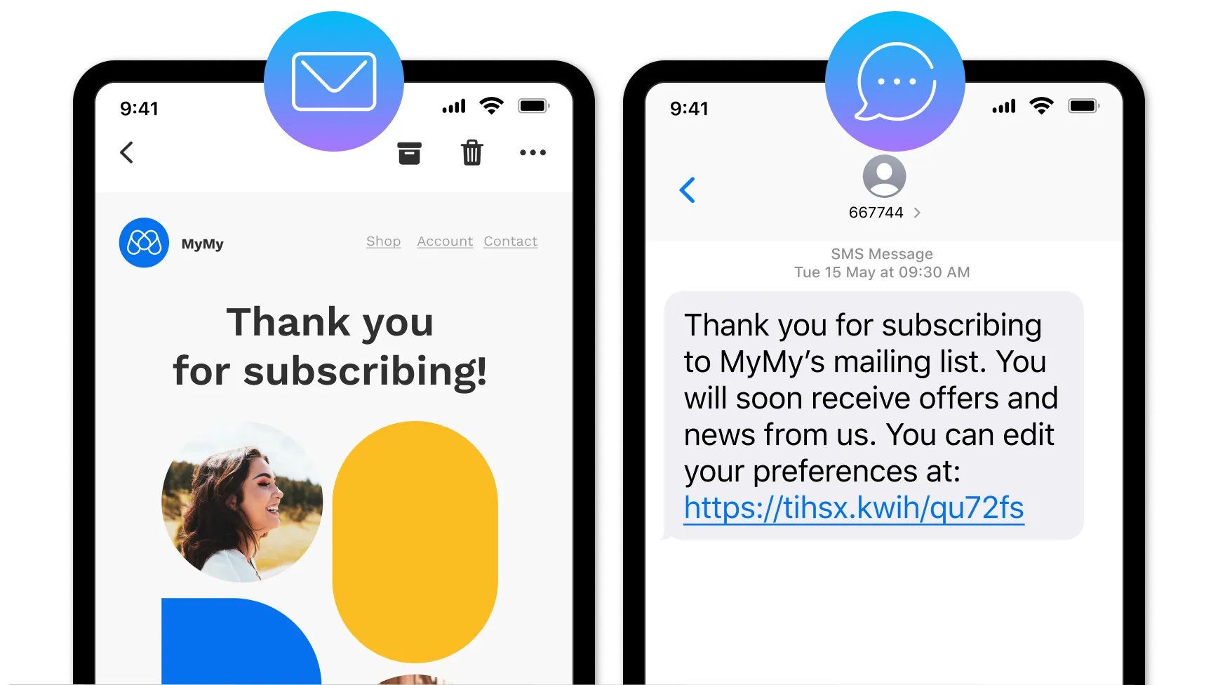 By combining the two channels in this way, email offers deeper context and multimedia potential, while SMS supports with rapid delivery and its much higher open rates. With the two together, you can use each channel depending on customer preferences and create seamless touchpoints that engage and delight customers.