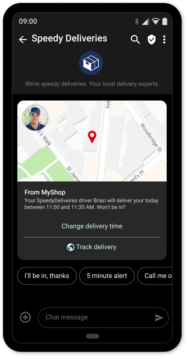 RCS is a device-native messaging protocol that supports rich multimedia and interactive components, such as contextual action buttons, web links, and maps. RCS messaging is a compelling proposition because it evolves the SMS experience while retaining its accessibility and simplicity. It also lets you reach customers directly without requiring them to install a third-party app to take advantage of the following features: