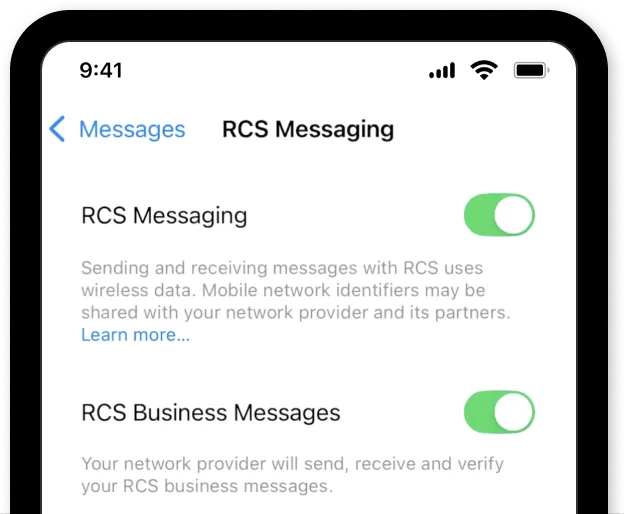 Connectivity: RCS requires an internet connection—either through Wi-Fi or mobile data provider. If there is no internet available, the RCS protocol will use the SMS channel.