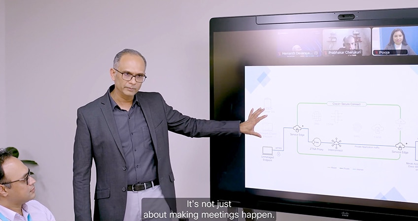 Easy to deploy, scale, and maintain. The simplified architecture of Cisco device deployments means you get everything you need to take your meeting space to the next level—without overly complex installations and systems integration.