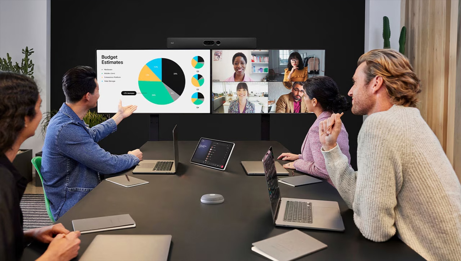 Plan and visualize your desk workstations, hot desk spaces, and focus rooms at scale with Cisco webcams, headsets, desk phones, and all-in-one desk collaboration devices in an interactive 3D experience.